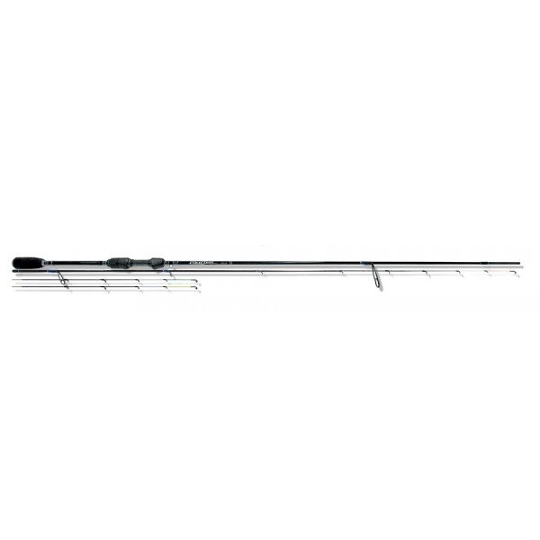 При этом средняя и комлевая части спиннинга довольно мощные и позволяют вываживать приличную рыбу. Для удобства ловли верхние части «квивертипов» окрашены в яркие цвета.