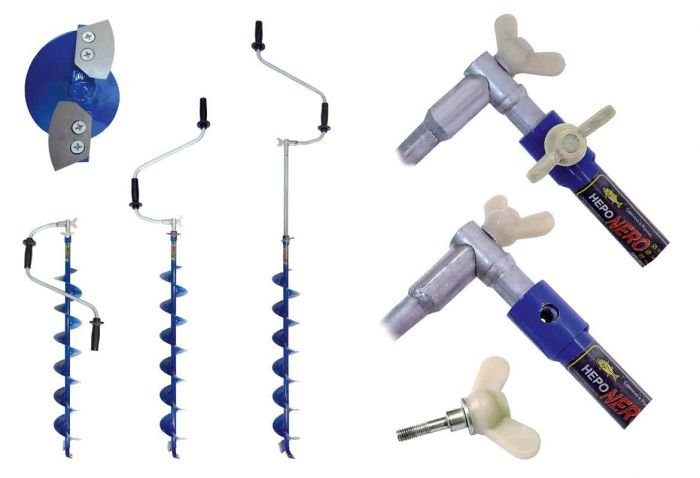 Модель NERO телескопической конструкции. Достаточно легкий, надежный и удобный в эксплуатации ледобур, который, в зависимости от регулировки длины, успешно справится с бурением льда толщиной до 1,50 м! Корпус ледобура оснащен стандартным высокоэффективным шнеком и головкой для крепления ножей. Внутри корпуса находится штанга, позволяющая увеличивать рабочую длину ледобура на 70 см.