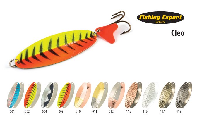 Cleo - характеризуется плавной и размашистой игрой. Применяется при ловле в озерах и при медленном течении. Одна из лучших блесен для ловли щуки.