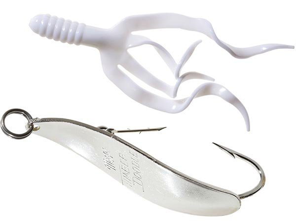 По существу, это стандартный SYCLOPS, оснащенный высококачественным одинарным крючком и шпилькой для фиксации головной части мягкой пластиковой приманки SPLIT DOOBLE TAIL (четыреххвостый твистер). Ее окончание фиксируется на острие крючка, надежно защищая ее от зацепов. Крючок становится свободным даже при слабой поклевке. MEPPS выпускает TIMBER DOODLE серебряного, золотого и черного цвета. Каждый из них комплектуется тремя пластиковыми приманками. Эта блесна имеет несколько эффективных способов проводки, в том числе: ступенчатая, равномерная с подергиванием, равномерная в полводы с остановками и т.п. Это очень хорошая и удобная приманка для ловли щуки, судака, крупного окуня. Кроме стандартной оснастки возможно применение однохвостых твистеров с телом удобным для фиксации.