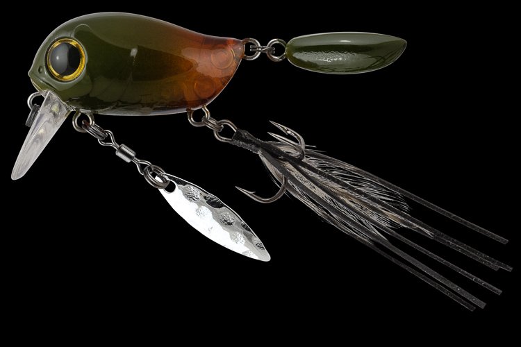 Особенности дизайна: KIKI 54F не похож на остальные воблеры-кренки, поскольку имеет в своей конструкции ряд оригинальных дополнительных элементов, призванных привлечь внимание хищной рыбы. Под брюшком у приманки находится подвижный металлический лепесток, который вращается при проводке, в задней части – жесткий пластиковый хвостик, который при движении в воде колеблется из стороны в сторону, а единственный тройник воблера оснащён мушкой из перьев и довольно длинных силиконовых нитей. Головная часть KIKI 54F рельефно имитирует жаберные крышки, а вклеенные объемные 3D глаза завершают реалистичный дизайн приманки.
